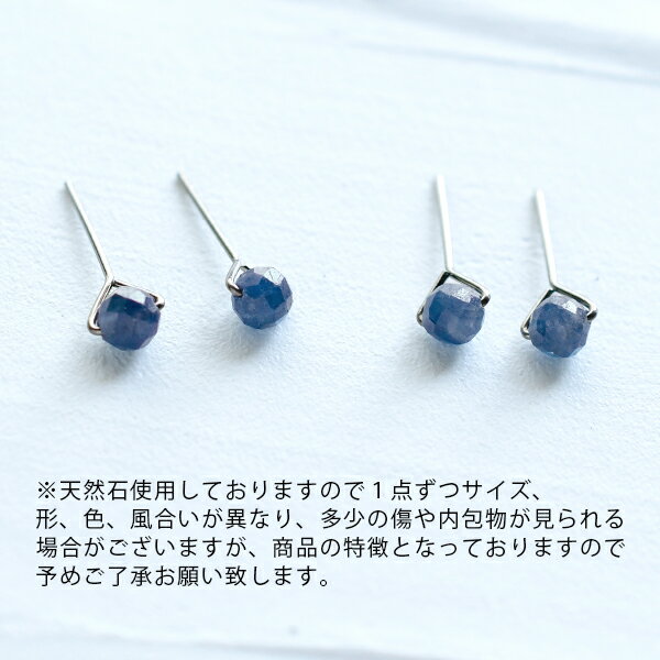 素材 ◆ピアス:純チタンスタッドピアス(シリコンキャッチ付) ◆天然石:サファイア 約4mm 前後 サイズ ◆ピアス:純チタンスタッドピアス(シリコンキャッチ付) ポスト太さ:約0.6ミリ ポストの長さ:約10ミリ前後 ◆サイズ:約H4 W5.5 D16(ミリ前後) ※ハンドメイドの為、大きさに個体差がございます 注意事項 ◆一つ一つ手作業で製作しておりますので画像との誤差が多少ございます。