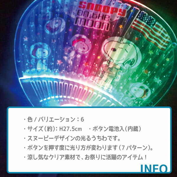【6/10限定エントリー&楽天カード利用P32倍以上】スヌーピー 光るうちわ {キャラクター 光り物 屋台 イベント 夏祭り 縁日 カラフル ギフト プレゼント セット} ※色柄指定不可 不良対応不可※ ★子ども会 景品 お祭り 幼稚園 まとめ買い 問屋 業務用 ☆まつり 夜店